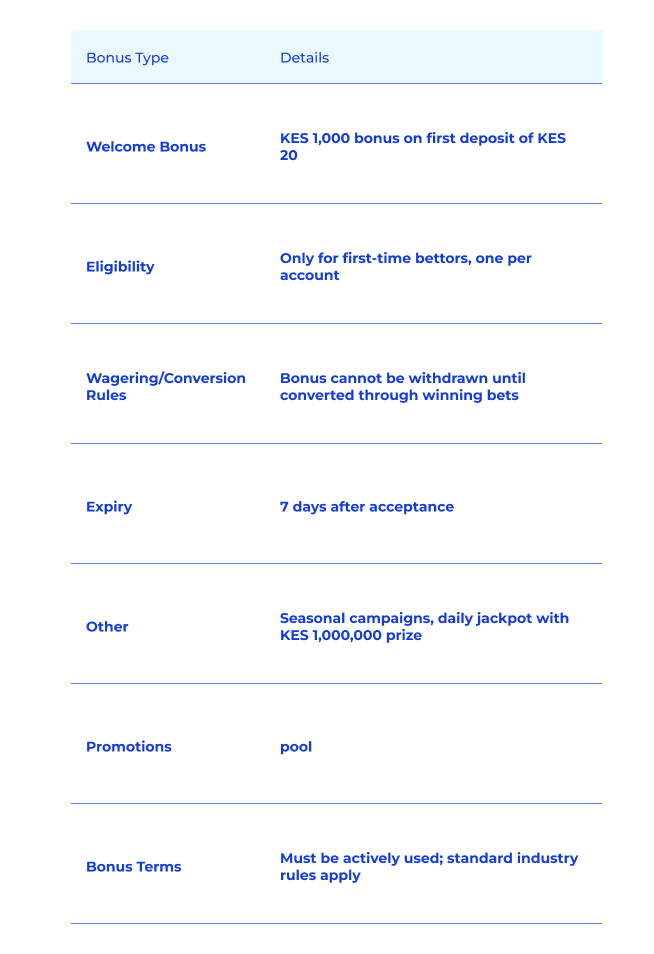With a minimum bet of KES 20, players can start betting right away. This makes the platform open to everyone, even those who are just trying it out or don't have a lot of money to spend.
