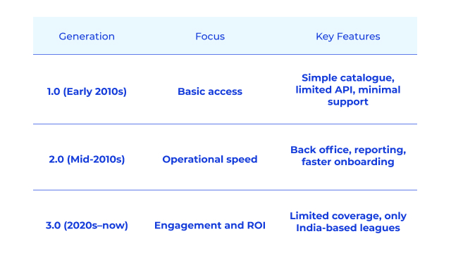 Les premiers agrégateurs sont apparus au début des années 2010 sous la forme de simples connecteurs de catalogue. Il s'agissait de simples passerelles API offrant un minimum de rapports et aucune fonctionnalité d'engagement.