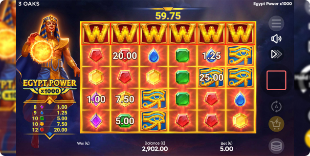 Avec des graphismes époustouflants, une ambiance sonore immersive et un décor de nuages désertiques flottants, Egypt Power x1000 insuffle l'énergie des pharaons antiques à chaque tour. Le système de rouleaux en cascade maintient l'excitation constante : chaque combinaison gagnante déclenche une réaction en chaîne de gains multiples en un seul tour.