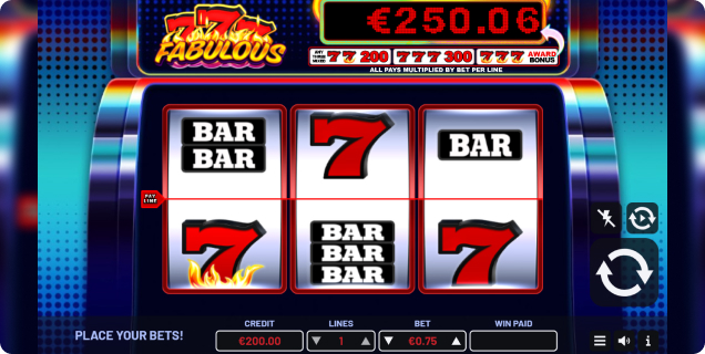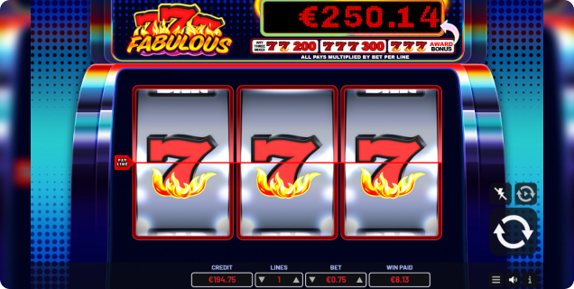Dans Fabulous 777, les sept classiques sont les symboles les plus rémunérateurs et peuvent se combiner avec les sept de feu pour former des combinaisons gagnantes. Le véritable suspense réside dans l’obtention de trois sept de feu, qui déclenchent le bonus progressif. Le jackpot démarre à 333x la mise et augmente continuellement à chaque mise, jusqu’à sa réinitialisation lorsqu’il est remporté.