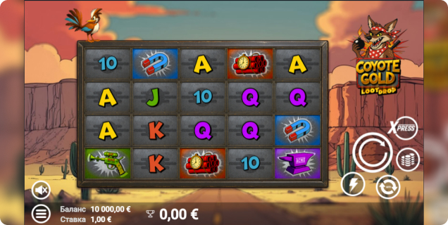 Débordant de visuels audacieux, de mécanismes à haute énergie et de surprises palpitantes à chaque tour, Coyote Gold est conçu pour offrir une excitation sans arrêt et un gameplay gratifiant.