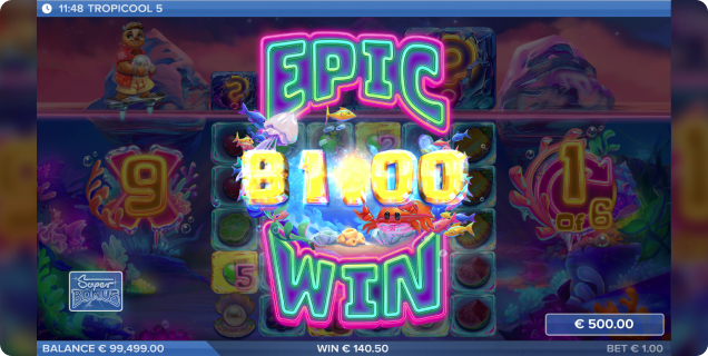 Construit sur une grille de 6 colonnes et 5 rangées, Tropicool 5 propose la Cool Reel, une exclusivité ELK Studios, ainsi que des symboles Wild, des multiplicateurs, des symboles mystères et un jeu bonus dynamique. Le tout se combine pour une expérience palpitante avec un gain maximal de 25 000 fois la mise.