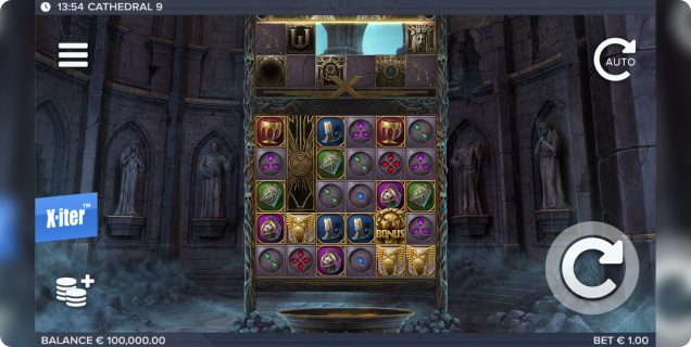 Cathedral 9 est une machine à sous sacrée à 6 rouleaux et 5 rangées qui comprend une rangée de fonctionnalités, des jokers, un multiplicateur global, une collecte de symboles, des symboles synchronisés, une fonctionnalité basée sur l'État, un bonus et un super bonus, le tout dans un potentiel de mise de 25 000 fois.