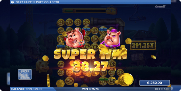 Ses graphismes colorés de style cartoon, ses personnages attachants et sa structure de jeu intuitive séduisent un large public. En combinant une histoire familière à des mécanismes de machine à sous innovants, Huff N Puff Collectr offre une expérience divertissante qui donne envie d'y revenir.