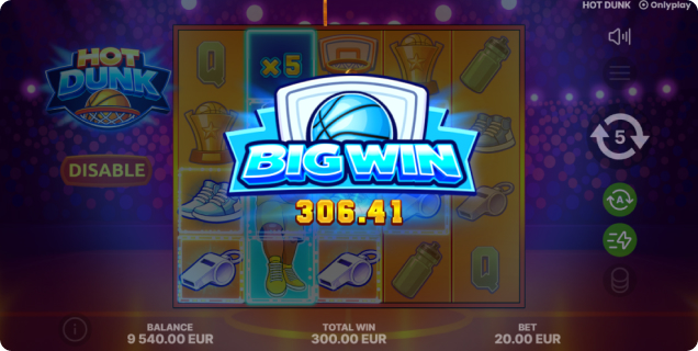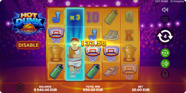 Avec un RTP de 95,50 %, une fréquence de gains de 23,80 % et une forte volatilité, Hot Dunk est conçu pour les joueurs qui apprécient un gameplay dynamique et la possibilité de décrocher de gros gains.