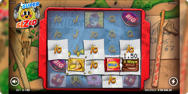 Supersized est une machine à sous à lignes de paiement connectées qui se déroule sur une grille 5-5-5-5-5-5 et peut atteindre une configuration impressionnante de 5-5-5-5-5-5-5-5-5-5. Ici, pas besoin de compter les calories !