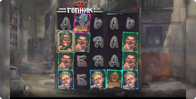 - La grand-mère fait office de symbole Wild et remplace tous les symboles payants. Lorsqu'elle apparaît, elle marque de 1 à 4 positions sur les autres rouleaux. Si un symbole Gopnik apparaît sur une zone marquée, il octroie un multiplicateur de mise instantané jusqu'à x50.