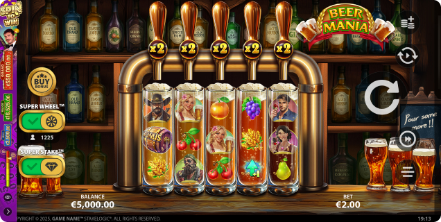 Stakelogic est ravi de présenter Beer Mania, une célébration du plaisir, de la saveur et de la fortune. Cette machine à sous dynamique transporte les joueurs directement vers un festival de la bière animé où chaque tour est un toast à l'excitation et aux grandes récompenses.