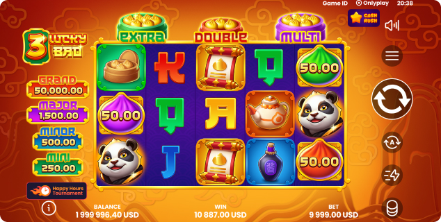 Onlyplay proudly presents 3 Lucky Bao – a charming slot of pandas, bao, and golden luck. The game welcomes players into a warm world where soft bao buns, traditional teapots, and an adorable panda host create a cozy atmosphere of comfort and fortune.