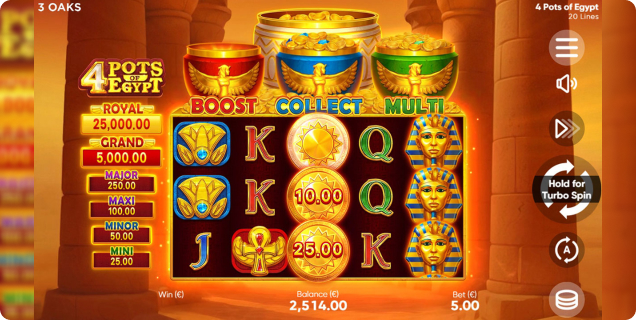 3 Oaks Gaming, an established distributor of iGaming content, has unveiled the latest addition of its acclaimed 4 Pots series with the release of 4 Pots of Egypt: Hold and Win.