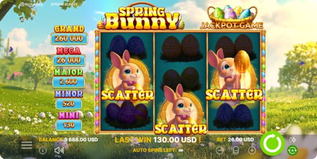 Spring Bunny adds a more dynamic and high-energy layer to the collection with its playful design and stronger risk profile. This video slot leans into classic Easter elements such as animals, eggs, and holiday-themed visuals. With an RTP of 95.42%, a 7.85% HIT rate, and high volatility, the game is designed for players who enjoy bigger swings and more intense moments. Wins may come less frequently, but they carry higher impact, creating a stronger sense of excitement. The visual style is light, colorful, and very expressive, reinforcing the spring mood. Its mechanics remain simple and accessible, allowing players to focus on the thrill of the game. The pacing feels energetic, keeping attention throughout the session. Spring Bunny balances charm and risk, making it a standout addition to the collection.