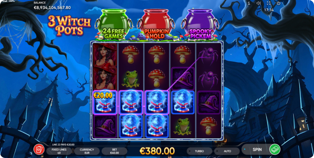 In this mysterious 5-reel, 4-row slot with 40 fixed paylines, players are transported to a dark and enchanting world, where three bubbling cauldrons hold the key to magical prizes. Each spin deepens the spell, combining festive Halloween charm with Endorphina’s signature balance of excitement, elegance, and immersive gameplay.