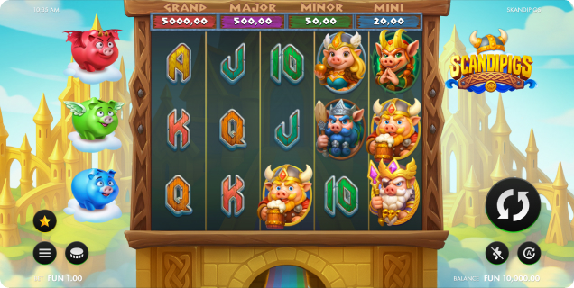 But in Scandipigs, the true stars of the saga are the Bonus Piggies — colorful, divine, and unstoppable. You’ll spot them proudly displayed on the left side of the screen, each ready to unleash its unique power.