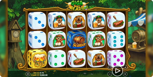 Set across a 5×3 reel layout with 20 paylines, Giga Beer Bears Dice offers straightforward gameplay enhanced by its standout Giga mechanic, adding extra excitement and dynamic reel action. The game strikes a balanced experience with Medium-Low volatility, making it suitable for players who enjoy steady gameplay with the chance for rewarding moments.