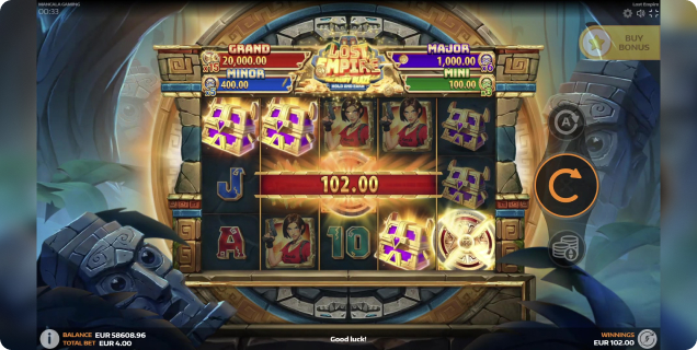 The adventure begins with a mysterious map, a crumbling temple, and whispers of untold riches. Lost Empire: Featuring Ruby Blaze invites players to join daring adventurer Ruby Blaze on her first great expedition — a quest to uncover the hidden jackpots sealed within ancient stone vaults.