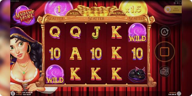 For players who want immediate access to the magic, Madame Veyra features four Buy Bonus options, ranging from accessible entry points to high-powered setups with up to 40 Wilds and a x10 multiplier, allowing full control over how the bonus experience begins.