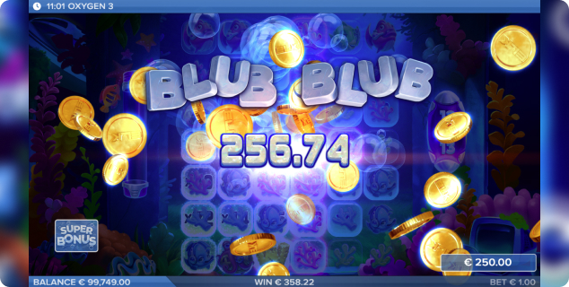 Landing three Bonus symbols activates the Bonus Game. During this round, an Oxygen Meter fills with every win. Once the meter reaches full capacity, it upgrades a cluster of multipliers on the grid, dramatically increasing the potential for larger payouts.