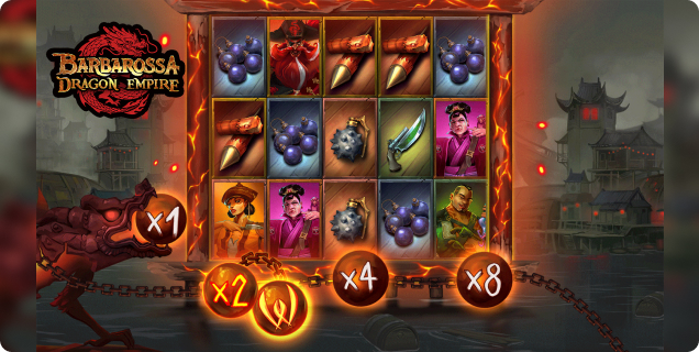 The third installment in the popular Barbarossa franchise heads East to an exotic Asian realm, headed by a returning cast of hardy buccaneers that once again come dressed in the studio’s instantly recognisable artwork. Reassuringly familiar yet offering a fresh, upgraded experience, Barbarossa Dragon Empire pairs the central Cannonball Double multiplier feature with a host of added extras. The Cannonball multiplier located under the reels doubles upon each winning cascade, with features like Golden Balls, Wild Balls, and Multiplier Jump Balls providing added firepower.