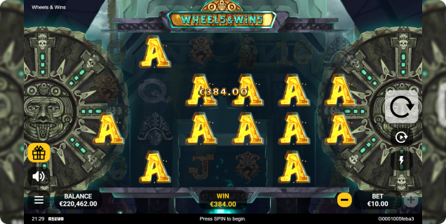 Built on a 6×4 reel grid with 4,096 ways to win, Wheels & Wins keeps the action flowing as powerful features ignite the reels. At the core of the game are the Sun Wheel and the Twin Sun Wheel—divine mechanics that unleash fiery multipliers across the grid. When activated together, these celestial forces raise the stakes to cosmic levels, creating astronomical win potential that shines brighter than the Aztec sun itself.